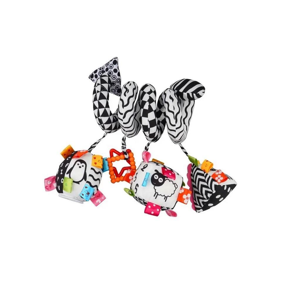 Kontrastowa spirala w magiczny sposób łączy walory rozrywkowe i edukacyjne, zapewniając Pluszakom Luzakom wspaniałą zabawę! Aż roi się tu od niespodzianek. Kontrastowe kolory pobudzają zmysł wzroku malucha, a zróżnicowane faktury materiałów, zmysł dotyku. W pluszakowych kształtach, piłce, kostce i piramidce, kryją się dzwoneczki, a piłkę dodatkowo zdobi bezpieczne lustereczko do samopoznania bobaska. Doczepiane do spirali gryzaczki przyniosą ulgę ząbkującym dzieciom. Spiralę bez trudu można owinąć wokół szczebelka ?óżeczka.