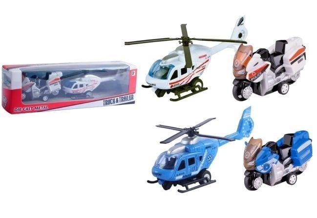 Przenieś zabawę na zupełnie nowy poziom dzięki wyjątkowemu zestawowi pojazdów policyjnych, który został stworzony z myślą o małych odkrywcach i miłośnikach mundurowych przygód. W skład każdego zestawu wchodzą dwa kluczowe elementy każdej jednostki specjalnej: nowoczesny helikopter patrolowy oraz szybki motocykl policyjny. Takie połączenie otwiera przed dzieckiem nieograniczone scenariusze zabawy - od błyskawicznych pościgów po skomplikowane akcje ratunkowe w trudnym terenie.