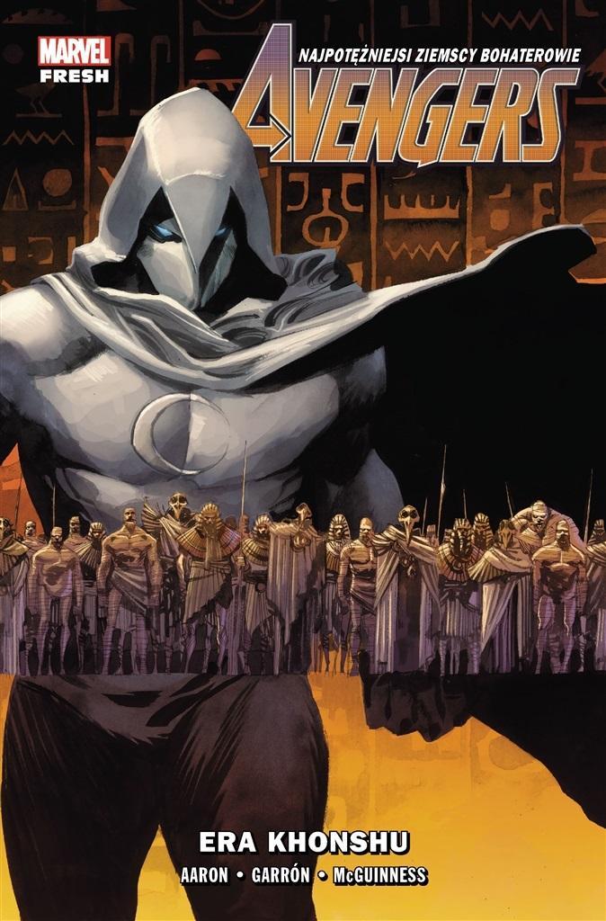 Siódmy tom przygód Avengers z serii wydawniczej Marvel Fresh! Tony Stark, uwięziony w epoce lodowcowej, traci nie tylko swoje cudowne wynalazki, ale i zmysły. Czy po zachodzie słońca, w godzinie diabła, utraci również duszę? Tymczasem we współczesności Avengers zmagają ze swoim byłym sprzymierzeńcem - groźniejszym od wszystkich wrogów! To przez niego na całym świecie ożywają mumie, a ich tajemnicze armie maszerują przy świetle księżyca od Wakandy po Nowy Jork, zwiastując świt nowej ery - ery Khonshu! Autorem tej opowieści jest Jason Aaron, zdobywca Nagrody Eisnera i innych najważniejszych komiksowych wyróżnień, znany z takich serii jak: "Skalp", "Thor Gromowładny" i "Potężna Thor", "Punisher Max" czy "Conan Barbarzyńca". Rysunki stworzyli między innymi Javier Garrón ("Inhumans kontra X-Men", "Śmierć X") oraz Ed McGuinness ("Deadpool Classic", "Superman/Batman"). Album zawiera materiały opublikowane pierwotnie w zeszytach #31-38 serii "Avengers".