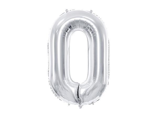 Balon foliowy metalizowany Cyfra ''0'' w kolorze srebrnym, rozmiar przed napompowaniem ok. 100 cm (39''), rozmiar po napompowaniu ok. 86 cm (34''). Do napomowania powietrzem i helem.
