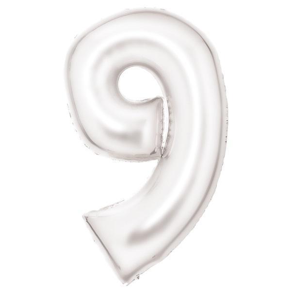 BALON FOLIOWY CYFRA 9 SATYNOWA BIAŁA 86CM