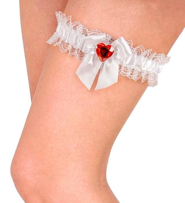BIAŁA PODWIĄZKA Z CZERWONYM KRYSZTAŁOWYM SERCEM