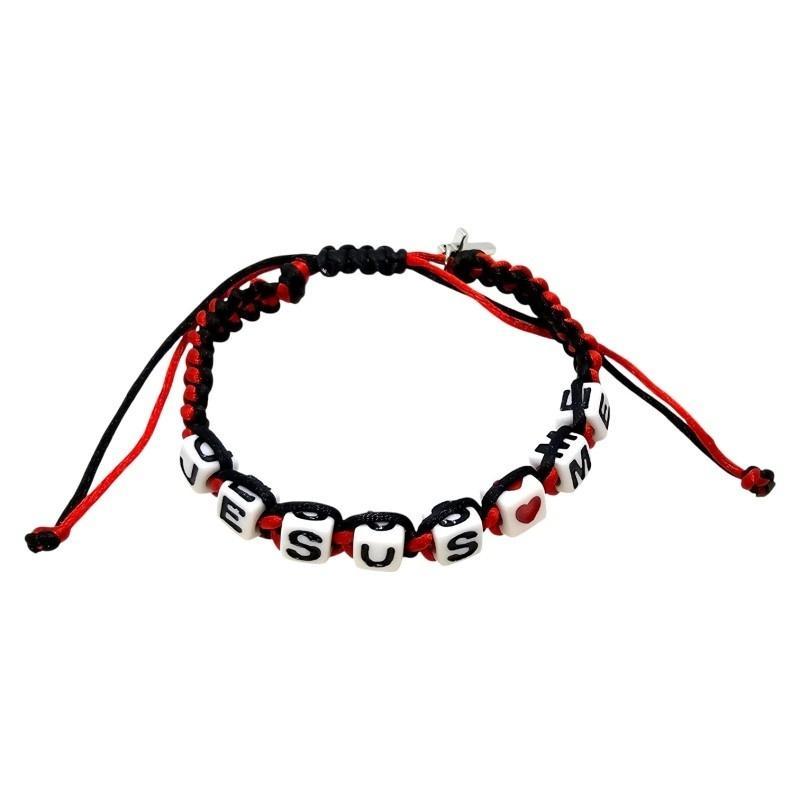 Czerwono-Czarna Sznurkowa Bransoletka "JESUS ME".