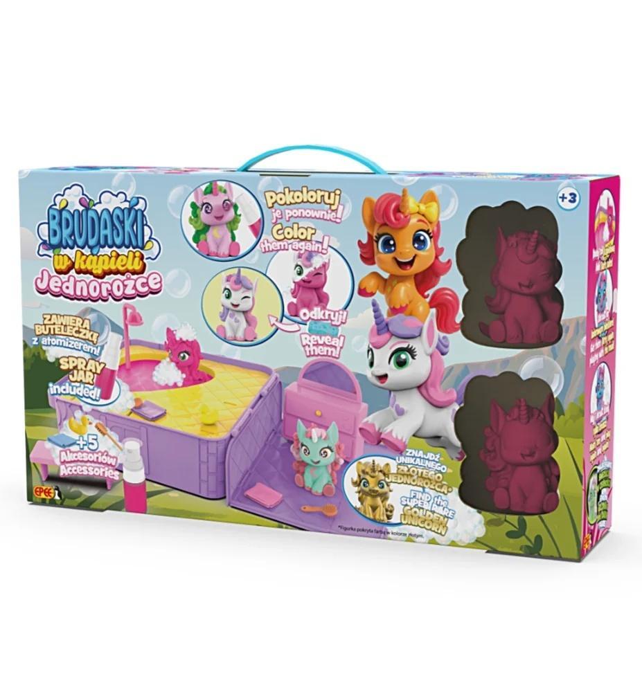 Brudaski w kąpieli Jednorożce to kolekcja uroczych jednorożców, które można brudzić błotkiem, myć i powtarzać to bez końca. Akcesoria dołączone do zestawów sprawią, że zabawa będzie jeszcze ciekawsza!