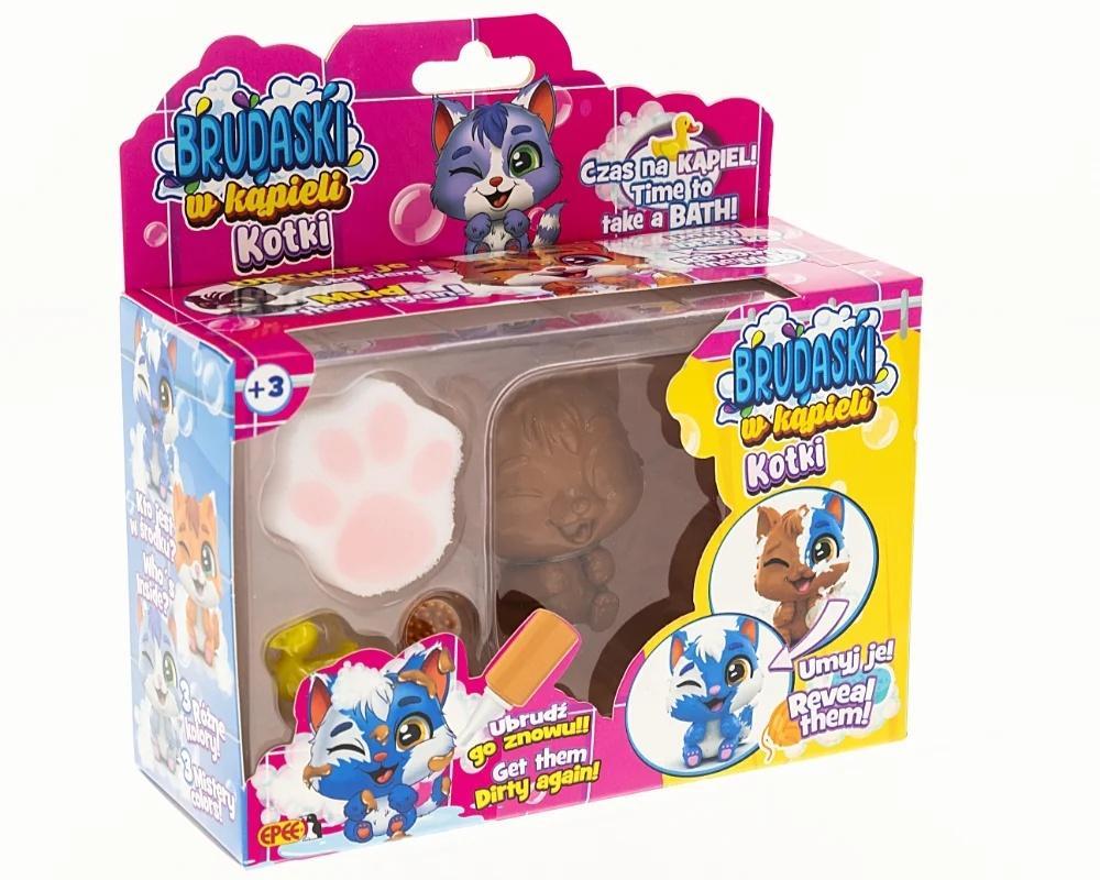 Poznaj kolekcję przesłodkich kotków, które można brudzić błotkiem, myć i zaczynać całą zabawę od nowa! Brudaski w kąpieli kotki to urocze figurki, które zostały stworzone po to, by zapewnić dzieciom mnóstwo radości i niezliczone możliwości kreatywnej zabawy. Dzięki specjalnej powłoce łatwo je wyczyścić, a zabawę ulepszą dołączone do kotków akcesoria.