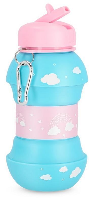 Składany bidon wykonany z silikonu, który nie pochłania zapachów i cechuje się dużą elastycznością. Bidon wyposażony jest w karabińczyk, ułatwiający przenoszenie produktu. Jest lekki, a po złożeniu zajmuje niezwykle mało miejsce i można przypiąć do do torby lub plecaka.