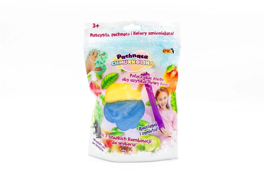 Nowa wersja Chmurkoliny. Teraz w opakowaniu 2 kolorowe puszyste masy, które po połączeniu tworzą nowy kolor! Można ją zgniatać i rozciągać oraz tworzyć fantastyczne kształty. W asortymencie aż słodkich 7 kolorów/zapachów: jeżyna, mięta, zielone jabłko, mango, brzoskwinia, malina, limonka Zawartość opakowania: 2 Chmurkoliny (2x30g)