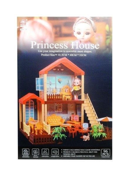 Plastikowy domek z akcesoriami do jego umeblowania. Całość składa się z 95 części. Całość spakowana jest w kartonowe pudełko, posiada też poręczny uchwyt. Zabawka działa na baterie typu AG13. Baterie znajdują się w zabawce. Produkt przeznaczony dla dzieci powyżej 3 lat.