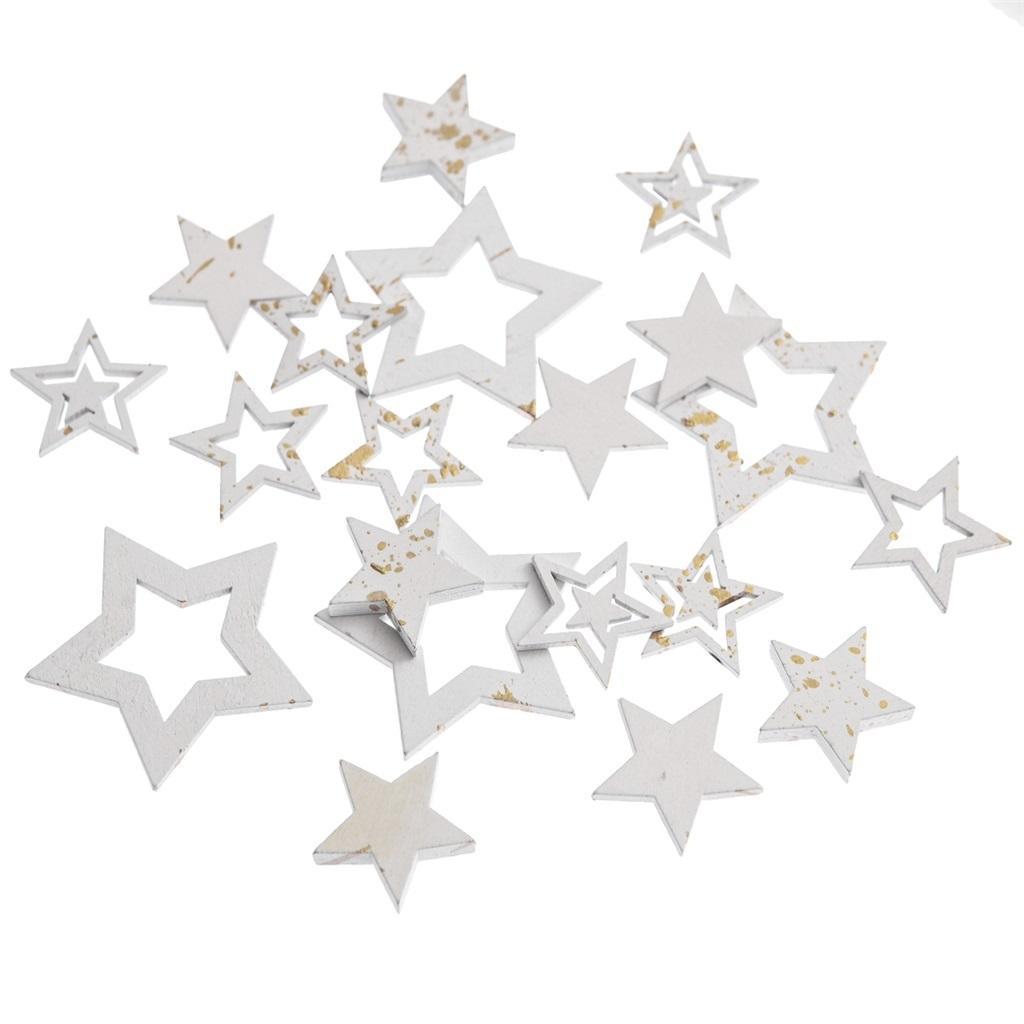 DREWNIANE GWIAZDKI BIAŁE ZŁOCONE 20SZT