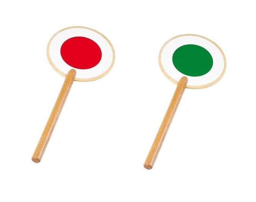 Dwustronny lizak do zabawy w policjanta. Kolor czerwony nakazuje pojazdom zatrzymanie się, a zielony zezwala na jazdę.