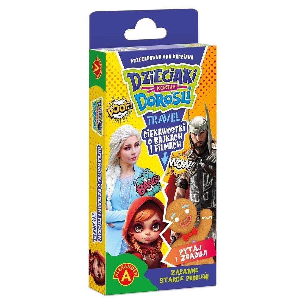 Co mogło obudzić Śpiącą Królewnę? Jak nazywa się syn Homera Simpsona? Gdzie mieszkają Muminki? Czy jesteście gotowi na wyjątkowe starcie pokoleń w przezabawnej grze karcianej? "Dzieciaki Kontra Dorośli Ciekawostki o Bajkach i Filmach Travel" to gra planszowa, która zapewni świetną zabawę całej rodzinie. Dzieci rywalizują z dorosłymi, odpowiadając na podchwytliwe pytania dotyczące świata baśni i filmów. Dzięki dwóm oddzielnym zestawom kart z pytaniami o innym poziomie trudności dedykowanym dzieciom oraz rodzicom, szanse na wygraną są takie same dla obu drużyn. Kto okaże się lepszy? Gra pełna śmiechu i emocji, idealna na wspólne rodzinne wieczory oraz imprezy w większym gronie. Rozgrywkę można przeprowadzić zarówno przy udziale tylko dwóch graczy jak i w pojedynku drużynowym. Gra "Dzieciaki Kontra Dorośli Ciekawostki o Bajkach i Filmach Travel" to doskonały sposób na naukę poprzez zabawę. Dzieci i dorośli mogą poszerzyć swoją wiedzę oraz rozwijać zarówno umiejętności współpracy jak i zdrowej rywalizacji. Wspólna zabawa wzmocni więzi rodzinne, zapewniając jednocześnie mnóstwo radości. Wyjątkowy, poręczny format opakowania, pozwoli na zabranie gry ze sobą dosłownie wszędzie. Idealnie zmieści się do każdego plecaka oraz torebki, umilając wspólne wypady. Zawartość opakowania: Plansza do gry 1 szt. Karty Pytań 55 szt. Pionki 2 szt. Instrukcja