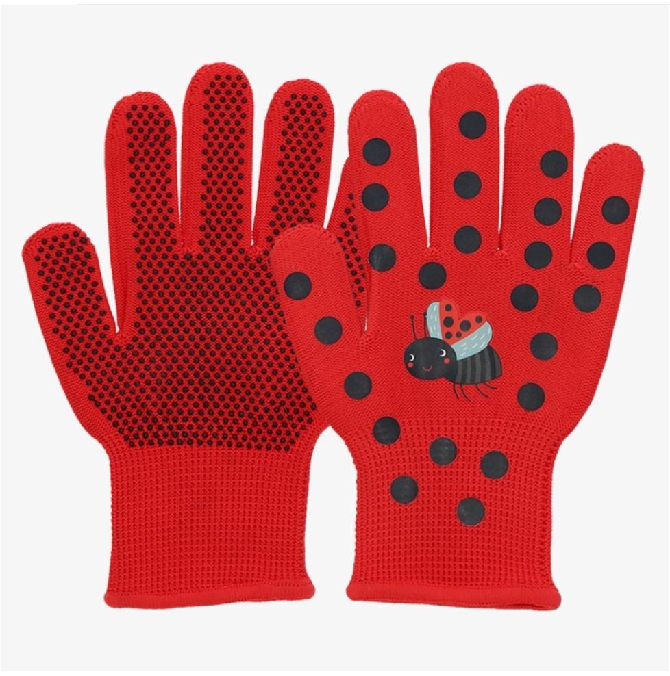 Uroczy motyw biedronki sprawia, że rękawiczki są idealne dla małych ogrodników. Elastyczny ściągacz przy nadgarstku chroni przed dostawaniem się ziemi do środka, a antypoślizgowe kropeczki na dłoni zapewniają pewny chwyt podczas pracy i zabawy.