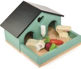 W zestawie pastelowy domek z poidełkiem, dwie figurki drewnianych króliczków oraz marchewka i rzepa - idealna zabawka dla małych miłośników zwierząt. Będzie wspaniałym dodatkiem do domków dla lalek lub jako osobna zabawka do opieki!