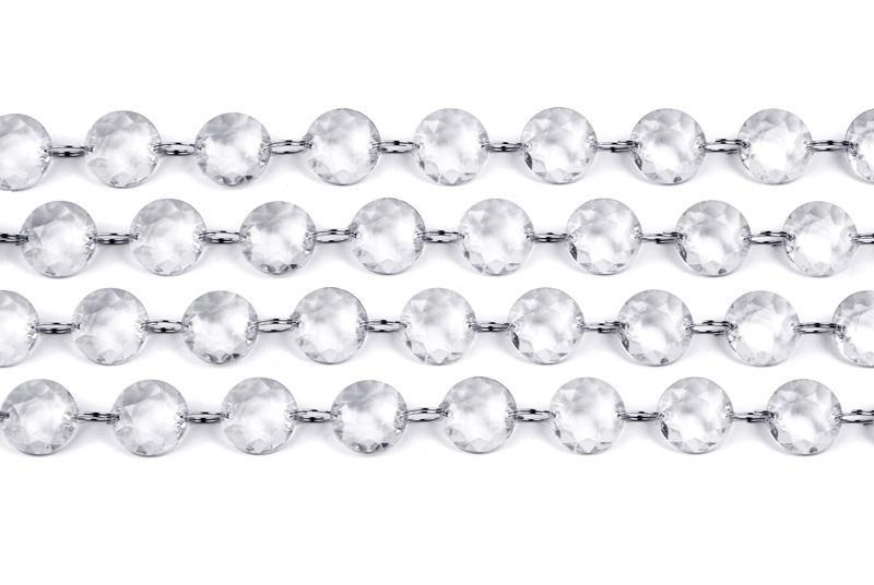 Girlanda kryształowa bezbarwna, długość 1 metr. Średnica kryształowego kółka 18 milimetrów.