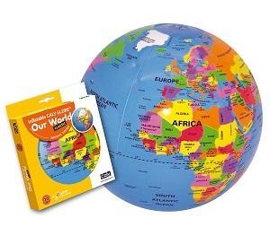 "Dzieci poznają kraje, granice i kontynenty. To odkrywanie pozwala im lepiej zrozumieć świat, jego rozmiar i podziały polityczne. Podczas zabawy z rówieśnikami czy z rodzicami mogą podróżować po całym świecie zadając różne pytania. Globus zawiera nazwy państw i stolic. Piłka globus jest do nadmuchania, opakowanie nie zawiera pompki. "