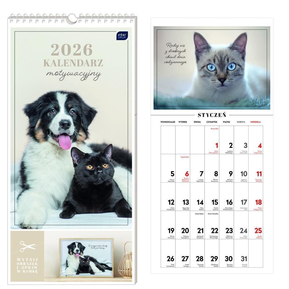 KALENDARZ 2026 MOTYWACYJNY 22X46CM ZWIERZAKI
