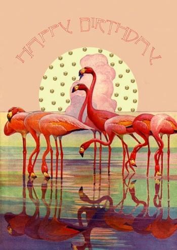 KARNET B6 BROKAT Z KOPERTĄ FLAMINGI ZACHÓD SŁOŃCA