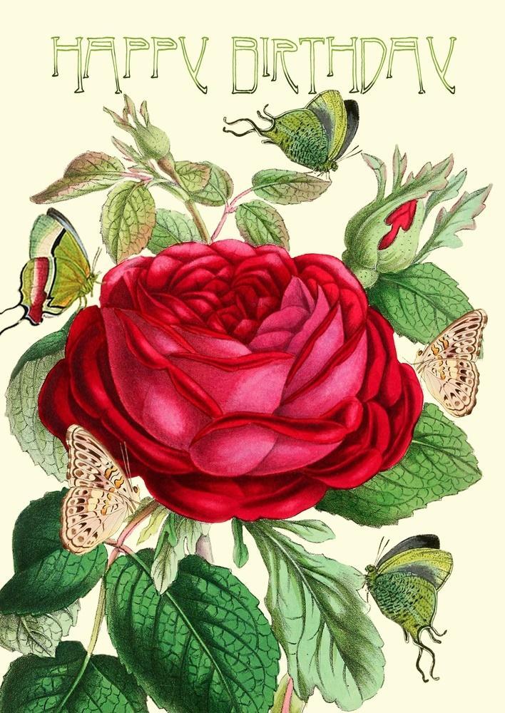 HB185 Karnet B6 brokat z kopertą Urodziny Róża, wyprodukowany w Wielkiej Brytanii