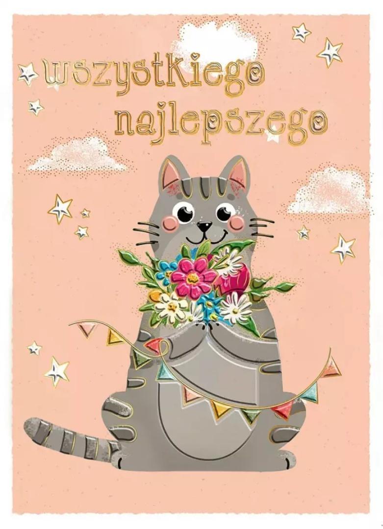 KARNET B6 KOT Z BUKIETEM BRZOSKWINIA
