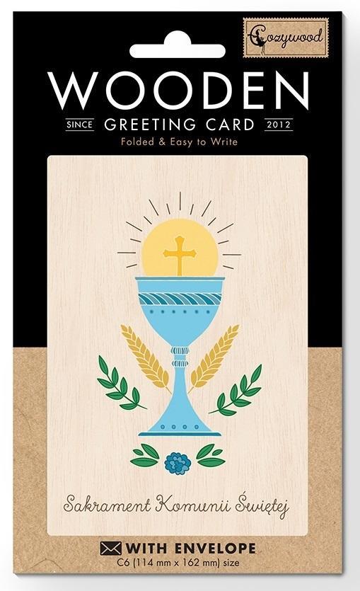 KARNET DREWNIANY C6 KOMUNIA KIELICH + KOPERTA