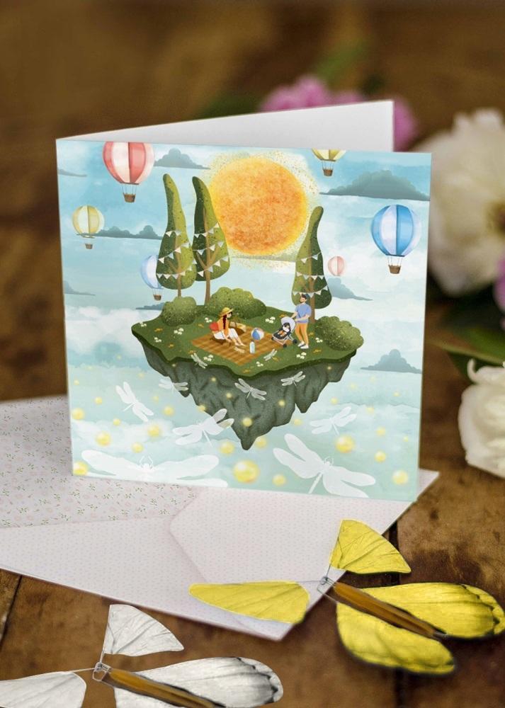 Duży karnet w formacie kwadratu (23x23cm) z niespodzianką. Po otwarciu karnetu wylatują z niego 2 papierowe motylki. Wspaniała niespodzianka dla osób poszukujących oryginalnego i efektownego prezentu. Do karnetu dołączona jest instrukcja obsługi. Wyprodukowany na Litwie.
