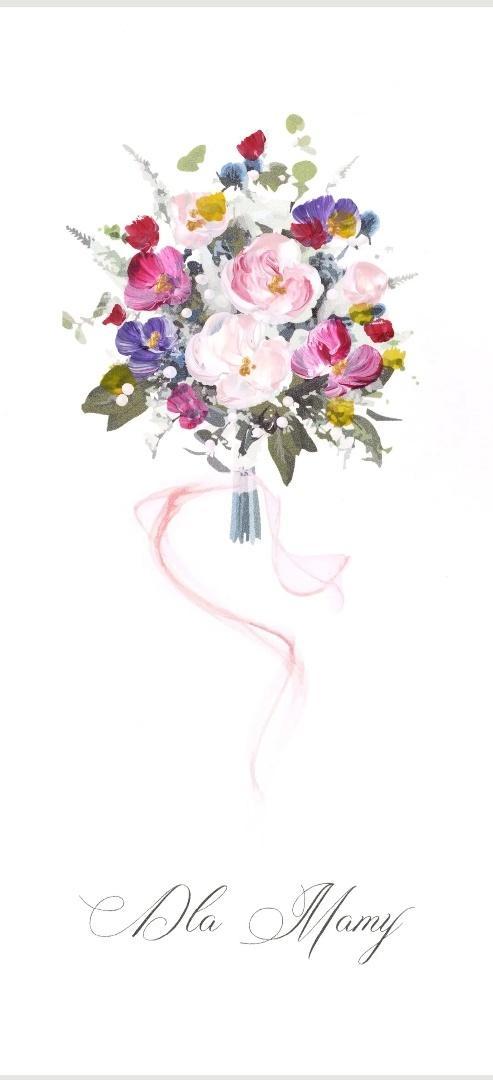 Elegancka kartka na Dzień Mamy z delikatnym, kwiatowym motywem, utrzymana w subtelnej i ponadczasowej stylistyce. Każdy egzemplarz jest ręcznie malowany, dzięki czemu stanowi unikatowe, małe dzieło sztuki i wyróżnia się niepowtarzalnym charakterem. Kartka została wykonana z wysokiej jakości papieru, z dbałością o każdy detal. Wnętrze pozostaje puste, co pozwala na dodanie własnych życzeń i nadanie jej osobistego wyrazu. W zestawie znajduje się dopasowana koperta. Wyprodukowany w Polsce.