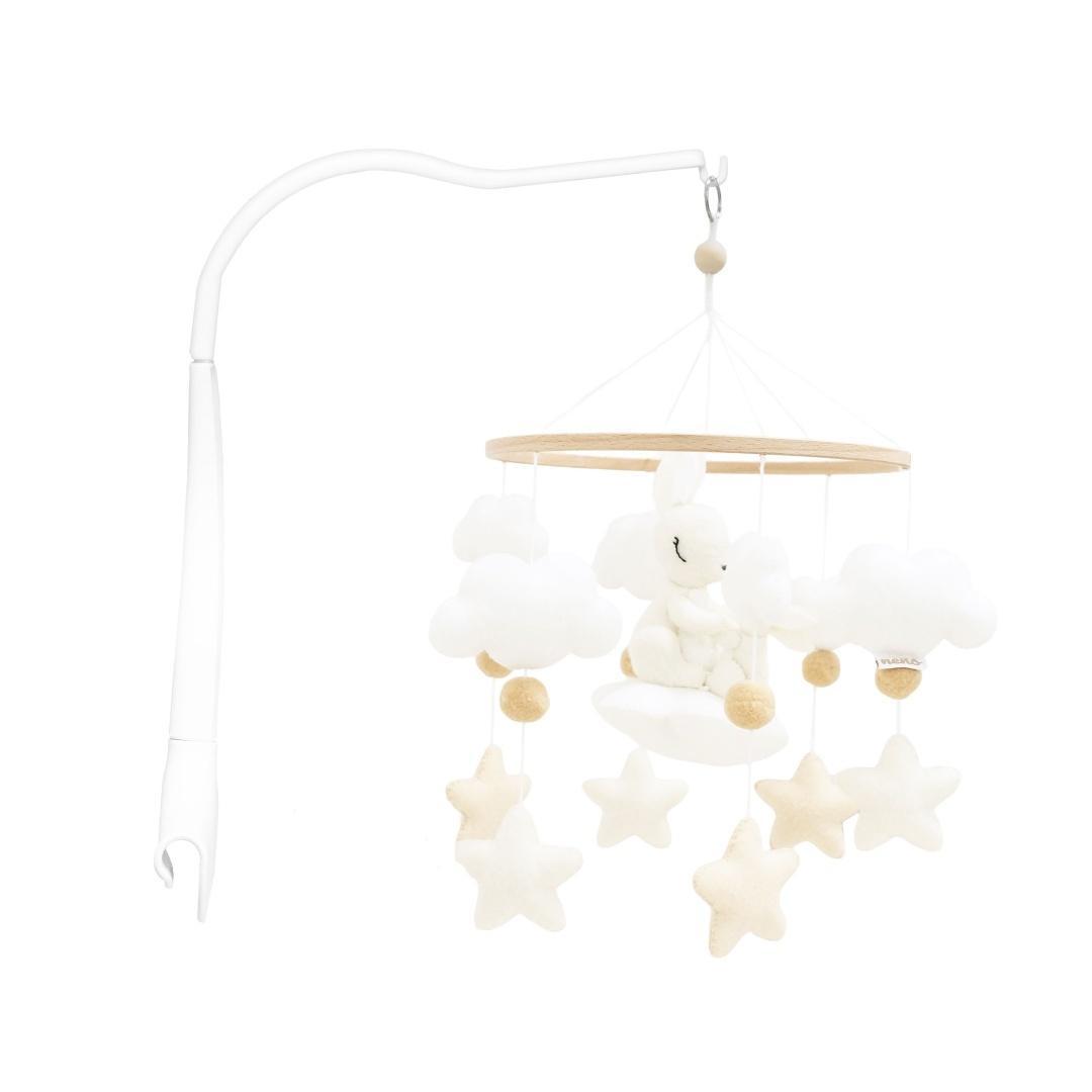 Miękkie zawieszki w kształcie zajączków, gwiazdek i chmurek wzbudzają ciekawość i zachęcają dziecko do wyciągania rączek w ich kierunku. Te drobne gesty stają się początkiem rozwijania koordynacji i odkrywania własnych możliwości.