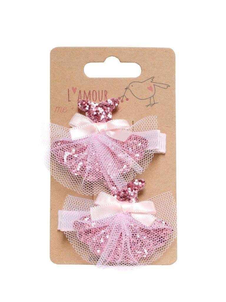 Zestaw klipsów z sukienką księżniczki w kolorze różowym.