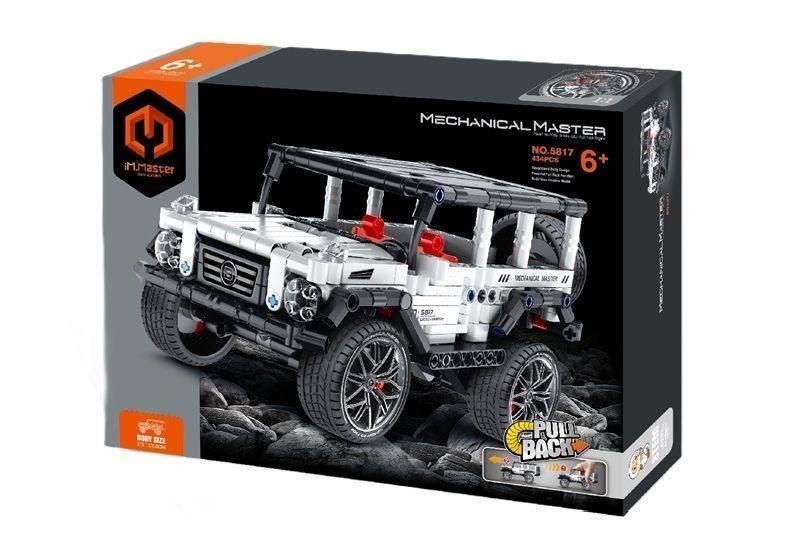 Klocki przedstawiają pojazd Off Road biały z funkcją Pull and Back.