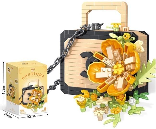 Zestaw klocków Boutique to propozycja, która zaciera granice między tradycyjną zabawką a designerskim elementem dekoracyjnym. Projekt ten został stworzony z myślą o osobach, które kochają piękno, detale i twórcze wyzwania. Głównym motywem zestawu jest elegancka torebka utrzymana w klasycznej kolorystyce beżu i czerni, która stanowi doskonałe tło dla spektakularnej, kwiatowej kompozycji. Centralny, rozkwitający kwiat w odcieniach miodu i złota przyciąga wzrok swoją wielowarstwową strukturą, nadając całości lekkości i artystycznego charakteru.