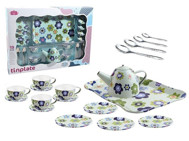 Komplet do herbaty metalowy kwiaty 19el