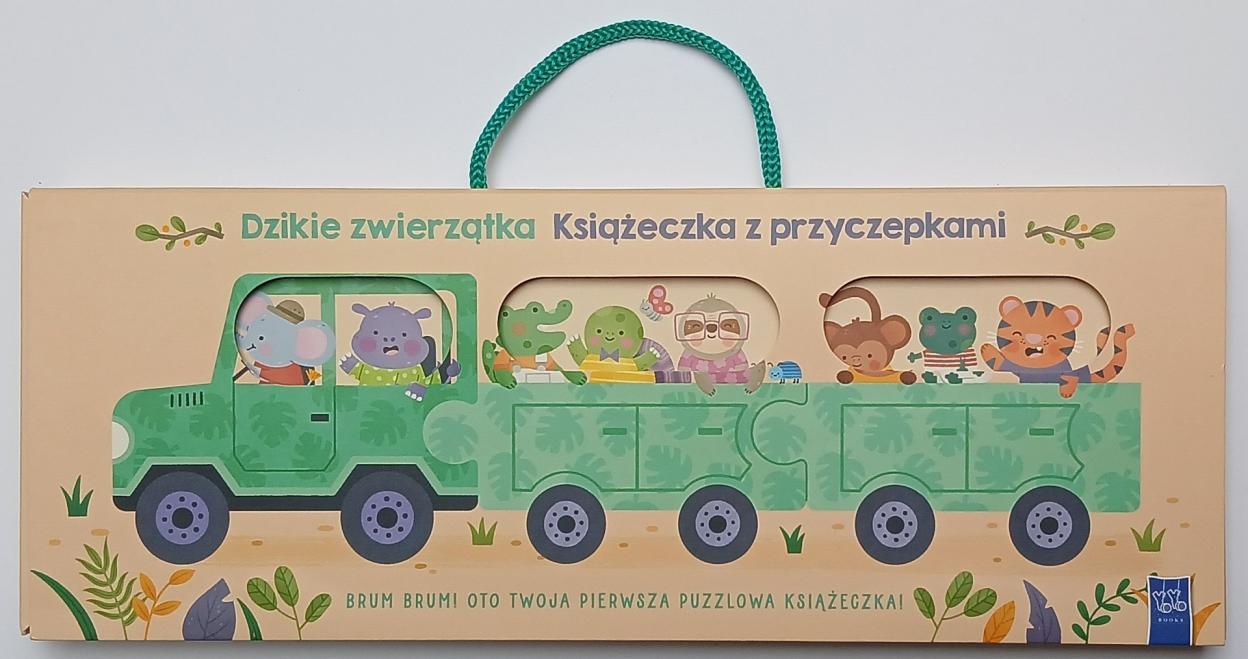 "Dołącz do wesołej zwierzęcej ekipy na safari! Wybierz jedną z puzzlowych książeczek-przyczepek i poznaj przyjaciół z tajemniczej fauny: słonia Trąbusia, hipopotama Pysia, tygryska Cętka, rozbrykaną gromadkę małpek - i nie tylko!