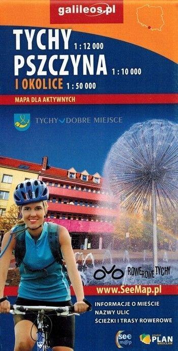 Składana mapa turystyczna Tychów w skali 1:12 000, Pszczyny w skali 1:10 000 oraz okolic w skali 1:50 000.