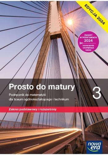 Uwaga! Edycja 2024. Publikacje dostosowane do zmian w podstawie programowej z 2024 r. Zawierają czytelne oznaczenia treści, które od września 2024 r. już nie obowiązują.Prosto do matury do klasy 3 dla zakresu podstawowego i rozszerzonego to podręcznik opracowany z myślą o wszystkich przygotowujących się do matury z matematyki.