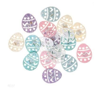 Opalizujące, ażurowe naklejki z filcu z motywem pisanek. Idealnie nadają się do ozdabiania wielkanocnych projektów typu scrapbooking (albumy, pudełka, pakowane prezentów), home decor; do aranżacji świątecznych stołów, stroików oraz wielu innych.