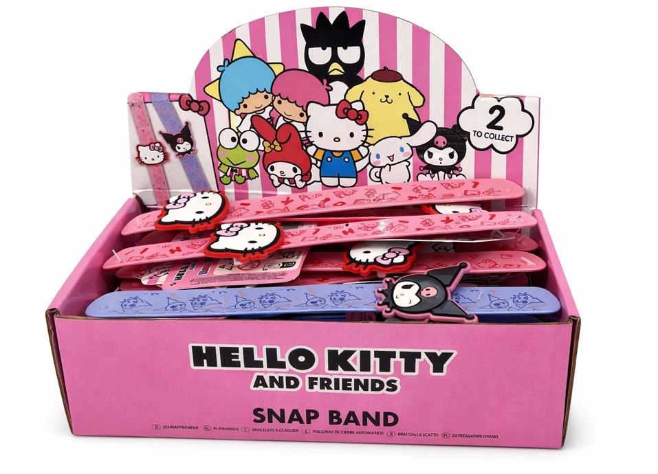 Odkryj świat uroku i zabawy z zestawem Hello Kitty and Friends Snap Band! ażda opaska typu snap band to nie tylko stylowy gadżet, ale także świetna zabawa wystarczy lekko uderzyć nią o nadgarstek, aby sama się zwinęła i dopasowała do ręki. W zestawie znajdziesz różne wzory z ulubionymi bohaterami, takimi jak Hello Kitty, Kuromi czy My Melody.