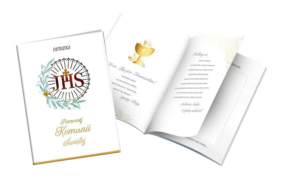 Książeczki PMB to produkt wyjątkowy - pięknie wydany, elegancki, a jednocześnie atrakcyjny cenowo. Każda książeczka ma twardą okładkę, kolorowe wnętrze z pięknymi grafikami i cytatami oraz życzenia i miejsce na osobistą dedykację. Na wewnętrznej stronie zdobionej złotą lub srebrną folią okładki wklejona jest specjalna, nieduża koperta, w której można przekazać kartę podarunkową lub banknot. Książeczka PMB Kukartka to idealny prezent na wyjątkową okazję, jaką niewątpliwie jest Pierwsza Komunia Święta. Cechy szczególne: wymiary książeczki: 15,1 x 20,8 cm. okładka: twarda, wyściełana, zdobienie: złota lub srebrna folia, wnętrze: kolorowe, z grafikami, cytaty, miejsce na dedykację i wpisanie miejsca/godziny uroczystości, gratis: koperta na drobny upominek wewnątrz, okazja: Komunia, Pamiątka Komunii Świętej.