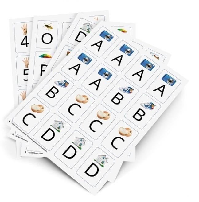 Zestaw kartoników z 24 podstawowymi wielkimi i małymi literami drukowanymi z