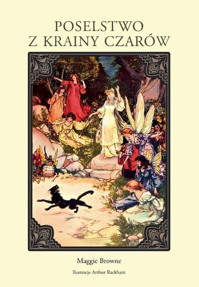 Powieść Maggie Browne z ilustracjami jednego z najsłynniejszych brytyjskich ilustratorów Arthura Rackhama ukazała się w Anglii po raz pierwszy w roku 1897 pod tytułem Dwie staruszki dwie niemądre wróżki i kot. W Polsce została wydana nakładem Gebethnera i Wolffa w 1903 roku jako Poselstwo z Krainy Czarów z adnotacją, że spolszczył ją z angielskiego B. Buyno. Podczas trwania II wojny światowej jej kolejne wydania należały do nielicznych książek dla dzieci publikowanych w języku polskim. Tym razem jednak usunięto z niej informację o angielskim pochodzeniu. Obecne wydanie w nowym tłumaczeniu i adaptacji przypomina ten pełen zwrotów akcji i humoru klasyk, który na pewno znajdzie fanów wśród miłośników baśni i opowieści o czarach.