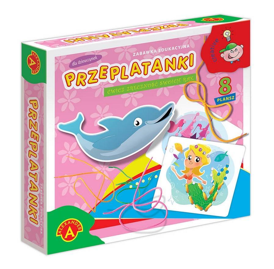 Przeplatanki to zabawa polegająca na przeplataniu kolorowego sznurka przez dziurki umieszczone na obrazku. Zabawka ćwiczy zręczność, cierpliwość, precyzję. Jest doskonałym wstępem dla dzieci do nauki wiązania butów oraz kokardek. Zestaw zawiera 8 dziurkowanych obrazków.