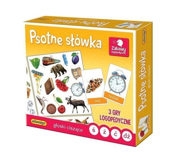 Seria gier PSOTNE SŁÓWKA przeznaczona jest dla wszystkich, którzy chcą doskonalić prawidłową wymowę trudnych głosek. Psotne polskie słowa często sprawiają najmłodszym wiele trudności. Dzięki grze ćwiczenia logopedyczne staną się przyjemnością.