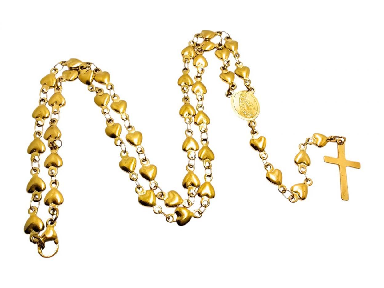 Złoty Różaniec Naszyjnik z Sercami - Stal Nierdzewna (33 cm)