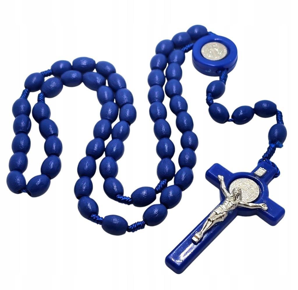 Niebieski Różaniec z Medalikiem św. Benedykta - Drewniane Koraliki, Symbol Ochrony.