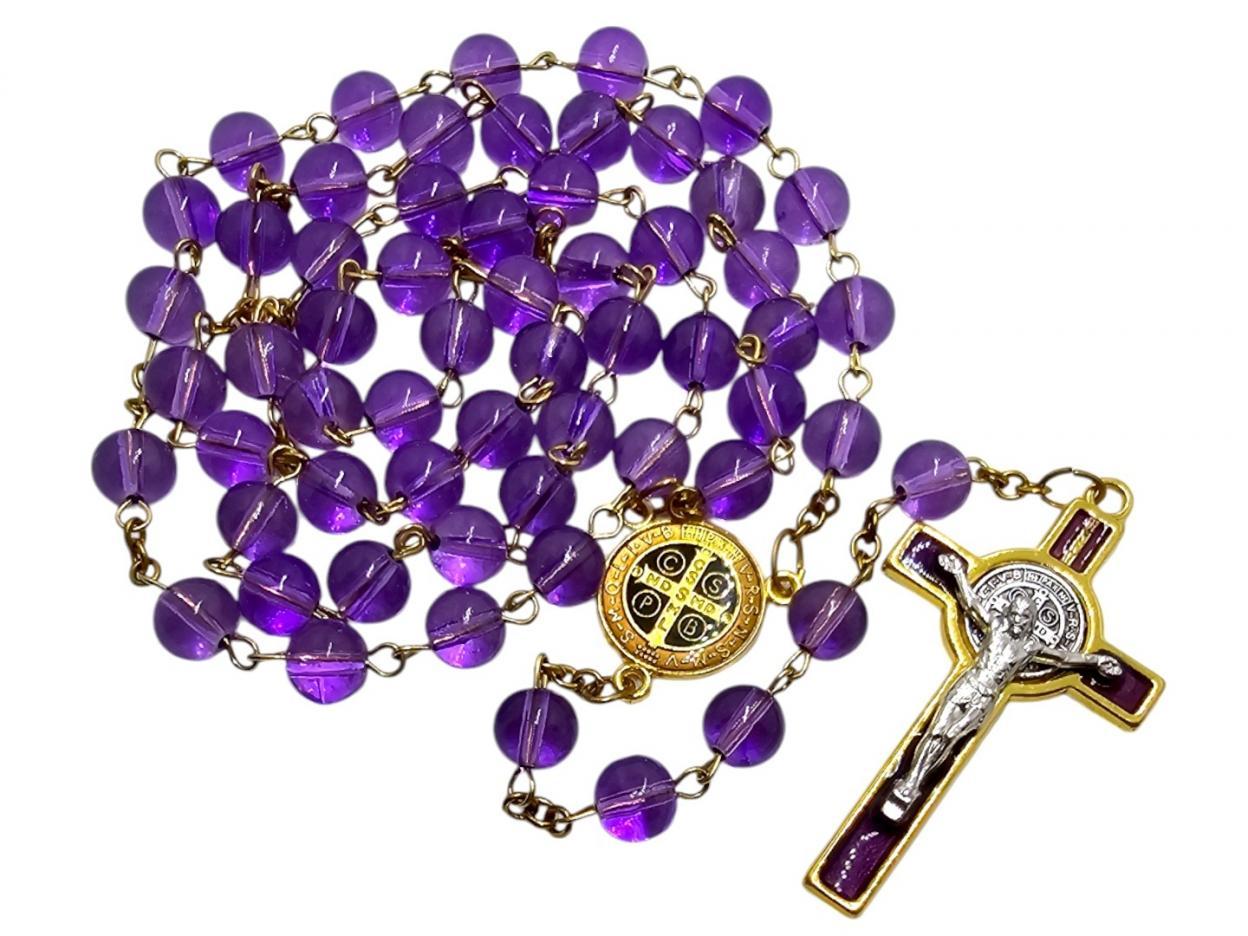 RÓŻANIEC SZKLANY ŚW. BENEDYKT FIOLETOWY