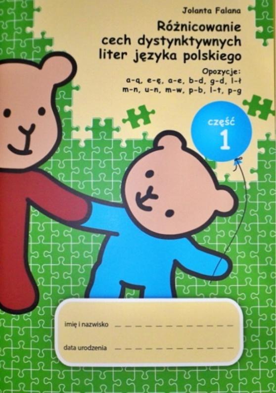 Zasada pracy nad cechami dystynktywnymi najczęściej mylonych liter języka polskiego jest taka sama jak w przypadku pracy logopedycznej nad głoskami opozycyjnymi1. Na początku należy zapoznać dziecko z obrazem graficznym i sposobem zapisu konkretnej opozycji literowej mylonej przez dziecko i wymagającej ćwiczenia. Ważne jest, by już na samym początku pracy nad różnicowaniem liter z cechami dystynktywnymi jako pierwszy etap wprowadzić znak graficzny litery w postaci drukowanej małej i dużej oraz pisanej małej i dużej. Następnie w celu lepszego zapamiętania obrazu graficznego litery, konieczne jest samodzielne zapisywanie przez dziecko mylonych liter w postaci pisanej, najpierw po śladzie, a potem samodzielnie, co wpłynie również korzystnie na sprawność grafomotoryczną ręki i odczytywanie w izolacji zapisanych ćwiczonych liter. Najważniejszym jednak etapem pracy nad różnicowaniem mylonych liter jest uporządkowane, linearne odczytywanie sylab i połączeń literowych zawierających litery opozycyjne różniące się tylko jedną cechą dystynktywną. Ostatnim etapem jest utrwalenie różnicowania liter opozycyjnych na materiale wyrazowym i zdaniowym. W naszym poradnikach nie został umieszczony materiał zdaniowy, ponieważ ćwiczenia można prowadzić z wykorzystaniem wszystkich dostępnych tekstów przeznaczonych do czytania przez dzieci. Zaproponowane przez nas ćwiczenia adresowane są głównie do lewej półkuli mózgowej, dlatego muszą być rzetelnie uporządkowane, a w celu zautomatyzowania wymagają wielokrotnych powtórzeń.