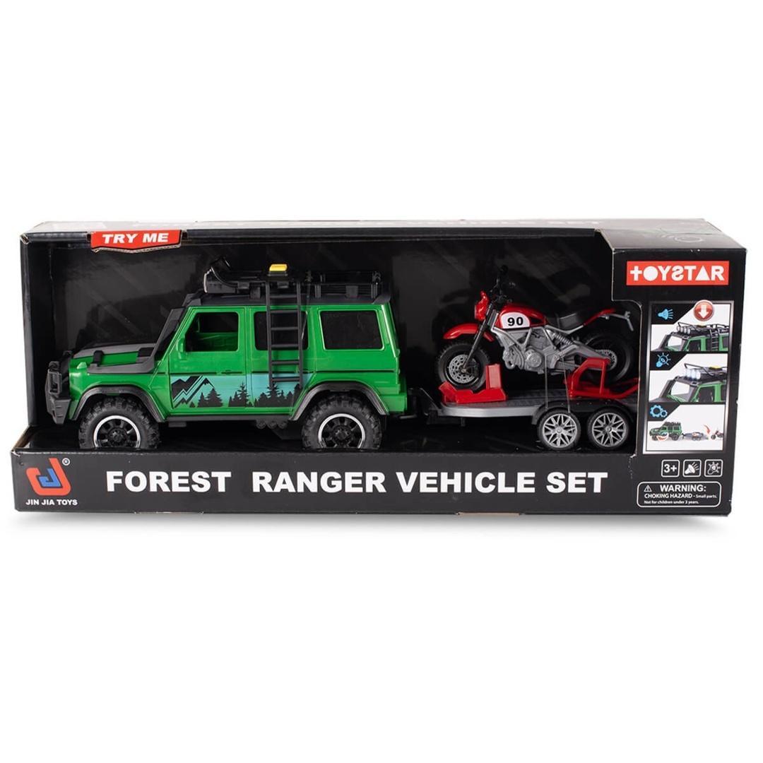 Auto terenowe z przyczepą typu laweta i motorem to zestaw, który zachwyci każdego małego fana motoryzacji! Pojazd w realistycznym stylu z efektami świetlnymi i dźwiękowymi wprowadzi dziecko w świat emocjonujących przygód. Solidna konstrukcja, gumowe koła oraz ruchome elementy sprawiają, że zabawa staje się jeszcze bardziej realistyczna. Zielone auto terenowe z motywem leśnym i odpinaną przyczepką typu laweta pozwala przewozić motor, inne pojazdy lub ulubione figurki. To doskonały sposób na rozwijanie wyobraźni, koordynacji ruchowej oraz kreatywności dziecka.