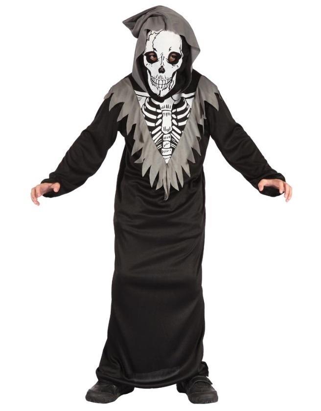 Strój Szkielet: płaszcz z kapturem, kaptur z nadrukiem, rozmiar: S/110-120 cm