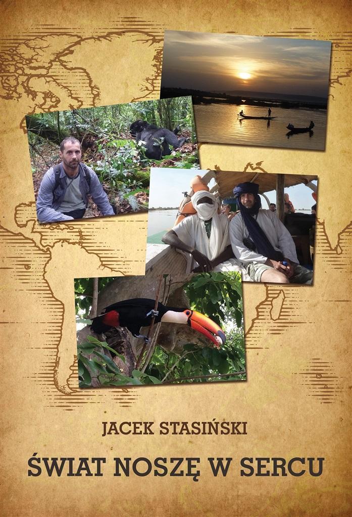 Świat noszę w sercu jest pierwszą książką z planowanej serii Podróży z Jackiem. To cykl promujący podróże oraz motywujący do poznawania świata z zachowaniem szacunku do odwiedzanych miejsc, napotykanych ludzi, tradycji i natury. Tom pierwszy zawiera 12 opowieści spisanych przez człowieka, dla którego świat stał się domem i osadzonych w niezwykłych lokacjach na mapie podróży po czterech kontynentach. Odwiedzimy magiczne Timbuktu, oazę Siwa, staniemy oko w oko z gorylami górskimi. Dotrzemy na wyspy Galapagos, dopadnie nas burza w Kolumbii, będziemy ścigać tukana nad wodospadami Iguaz. Na Jamajce wyłowimy z wody "żywe srebro". Czeka nas pełen humoru thriller nad wodospadem Niagara i corrida z wołem piżmowym w grenlandzkiej tundrze. Poznamy niuanse współczesnej Persji, japońskie ciekawostki z onsenu pod Fuji, czeka nas kąpiel z rekinem w tle w Kamakurze. Przemierzymy bezdroża Pamiru i będziemy świadkami wzruszającego spotkania z Polką w miejscu, gdzie diabeł mówi dobranoc.