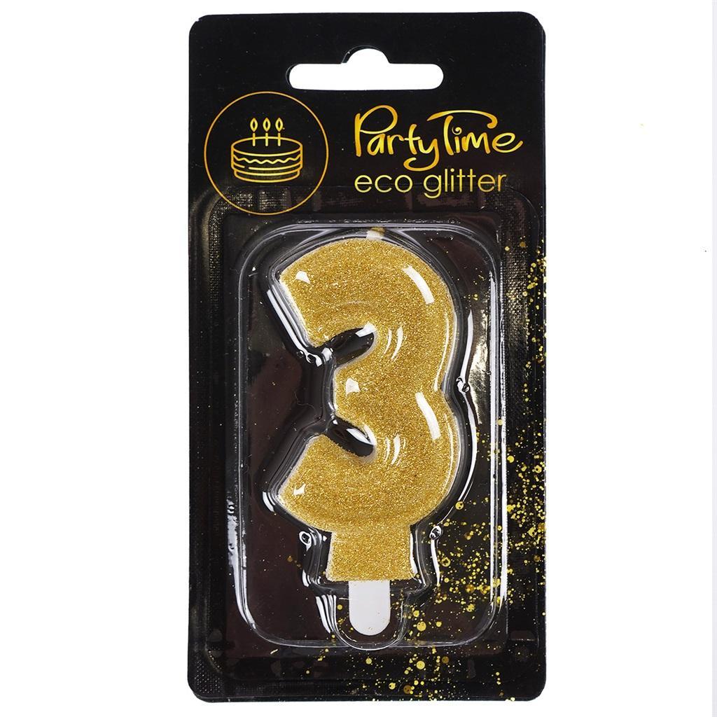 Świeczka cyferka z eko-brokatem nr 3