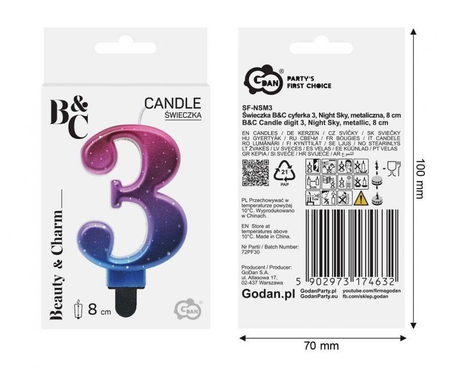 Świeczka Cyferka 3, metaliczna Night Sky, Beauty&Charm